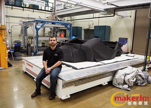 Strati的研發基地位于ORNL內的“制造示范基地(ManufacturingDemonstrationFacility,MDF)”(田納西州諾克斯維爾,圖1)。該3D打印車“工廠”設有大型3D打印機、用于打磨造型品表面的5軸切削加工機,以及組裝場地(圖2)?,F場沒有輸送帶及手推車之類的任何搬運裝置。從3D打印機上卸下來,再裝到5軸加工機上時,“用叉車抬一下就行了”。